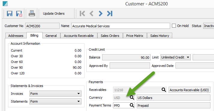 Customer (Billing tab):