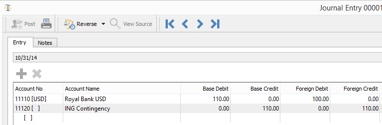 The foreign denominated General Ledger accounts, Accounts Receivable and Accounts Payable are all maintained in the foreign currency as well as Canadian dollars; for every foreign currency entry, there is both a Canadian dollar journal entry as well as a foreign currency journal entry.