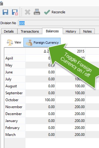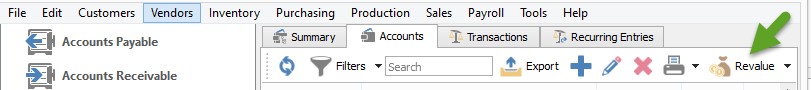 To run the revaluation routine, click on the Revalue icon when on the Accounts tab of the General Ledger.
