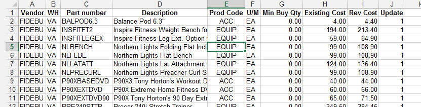 Below is a sample Excel spreadsheet ready for importing into the Vendor Price table.